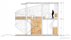 Design of a beach house in a cube made with fixed metal structural beams. .